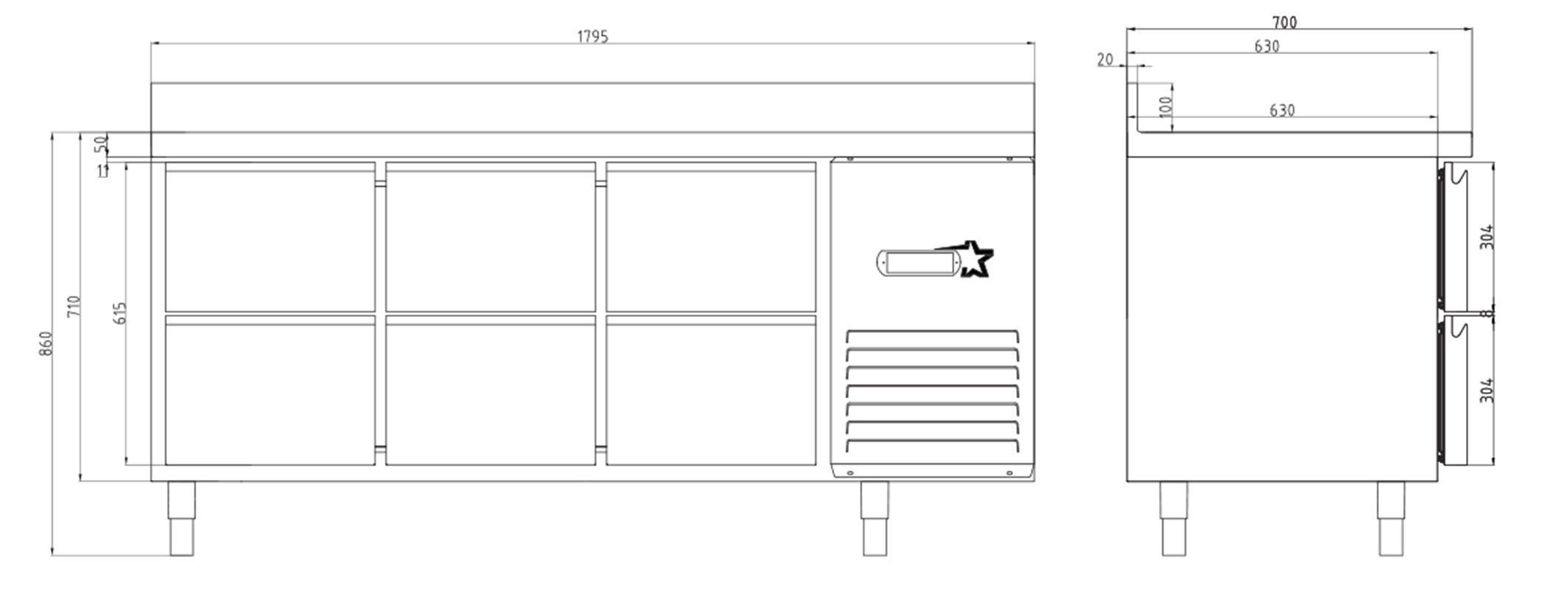 6 DRAWERS COUNTER REFRIGERATOR WITH UPSTAND