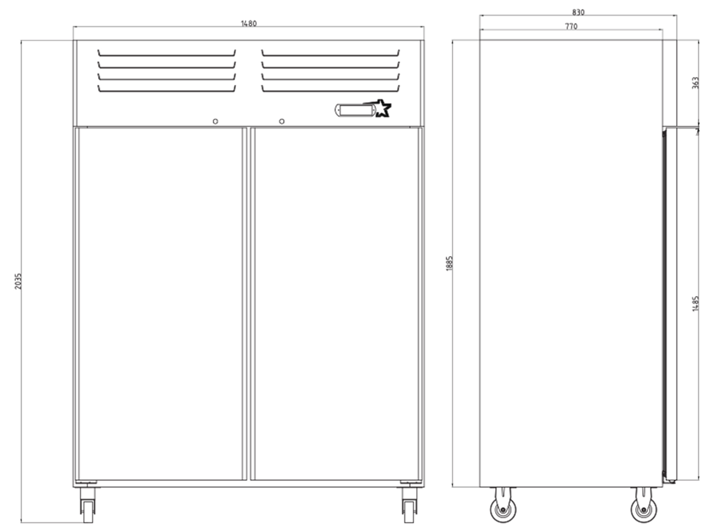 | External Dimension W x D x H (mm) | 1480 X 830 X 2010 |