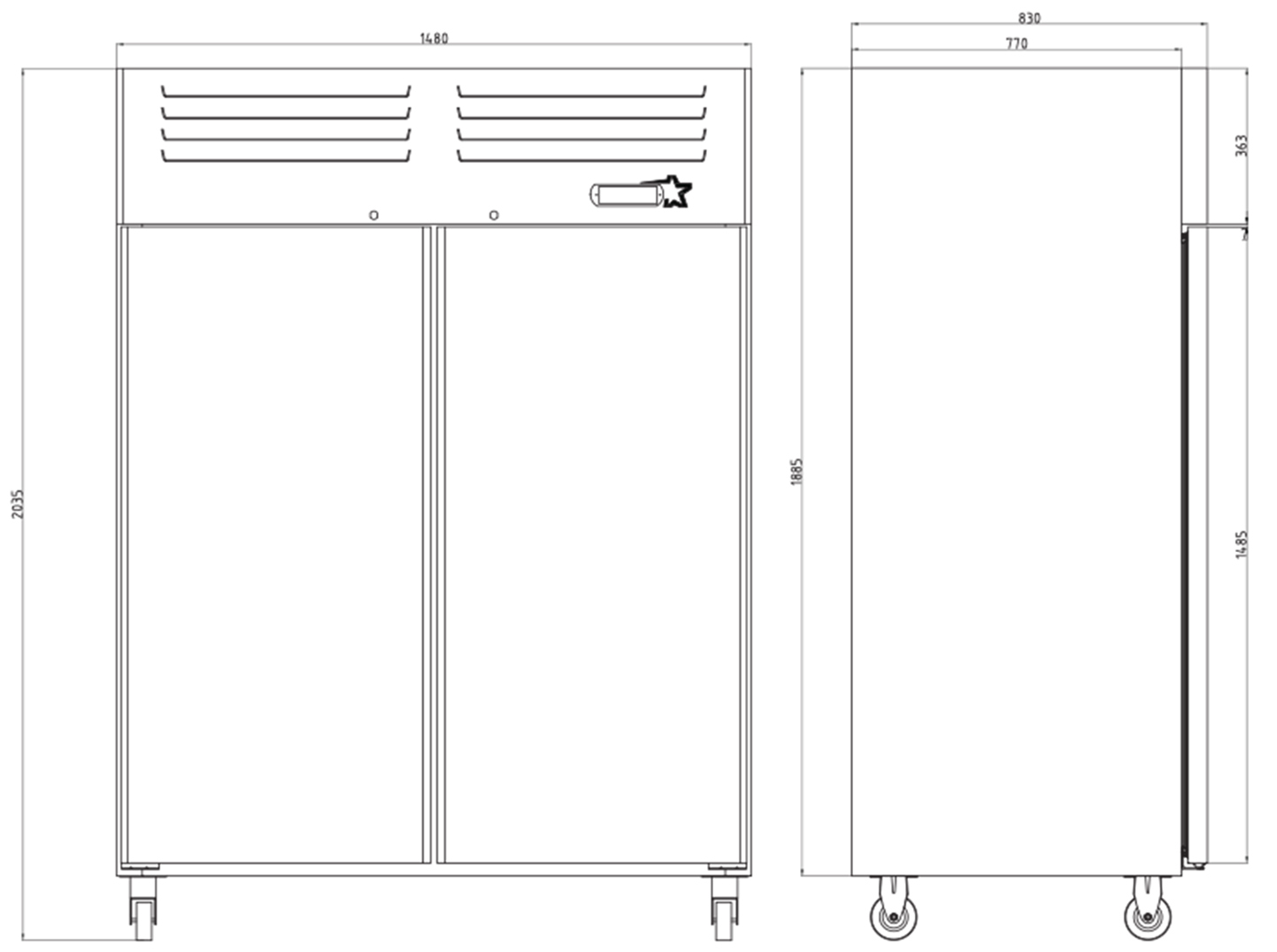 | External Dimension W x D x H (mm) | 1480 X 830 X 2010 |