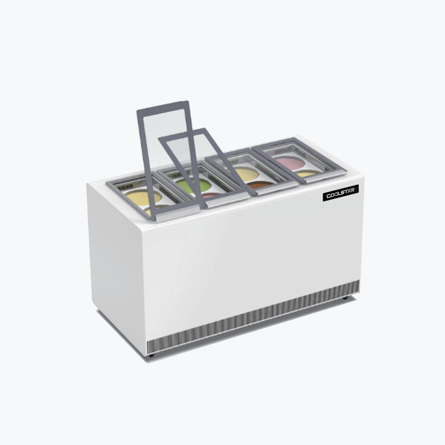 COOLSTAR Ice Cream Counter Showcase delivers premium front-of-house presentation with reliable cooling for scoops, toppings, and pre-packaged desserts. Designed for cafes, gelaterias, and dessert counters, it features a hygienic stainless steel Interior, a clear glass display with minimal framing, energy-efficient cooling, and easy cleaning. It combines attractive aesthetics with dependable performance for an engaging customer experience.