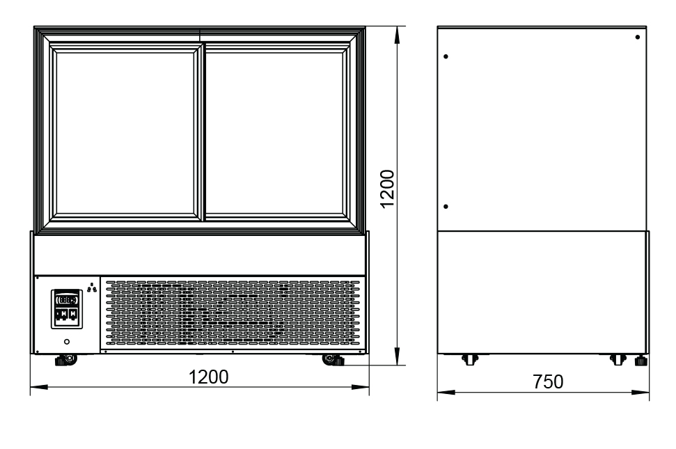 The COOLSTAR IRS pastry display show cases are engineered for premium pastry, bakery, and confectionery displays in professional environments. Built around robust SS 304 interior and exterior panels with a sleek black finish, they deliver an upscale storefront presence alongside reliable, energy-conscious cooling. Each unit features integrated high-CRI, low-heat LED lighting to showcase products without compromising pastry texture, and a refined silhouette with premium hardware for a sophisticated, restaurant- ready look. The cooling system is driven by Embraco compressors paired with Dixcell digital controllers, delivering precise temperature regulation, rapid fault reporting, and consistent performance even in busy open-kitchen or front-of-house settings. Power-saving design is reinforced through optimized air distribution, high-efficiency fans, advanced insulation, and lighting that minimizes heat contribution. All models are prepared for remote monitoring and can be configured to meet Eurovent energy-class criteria where applicable. Construction uses corrosion-resistant, food-safe finishes in a durable black 55 aesthetic to maintain long-term cleanliness and appearance.